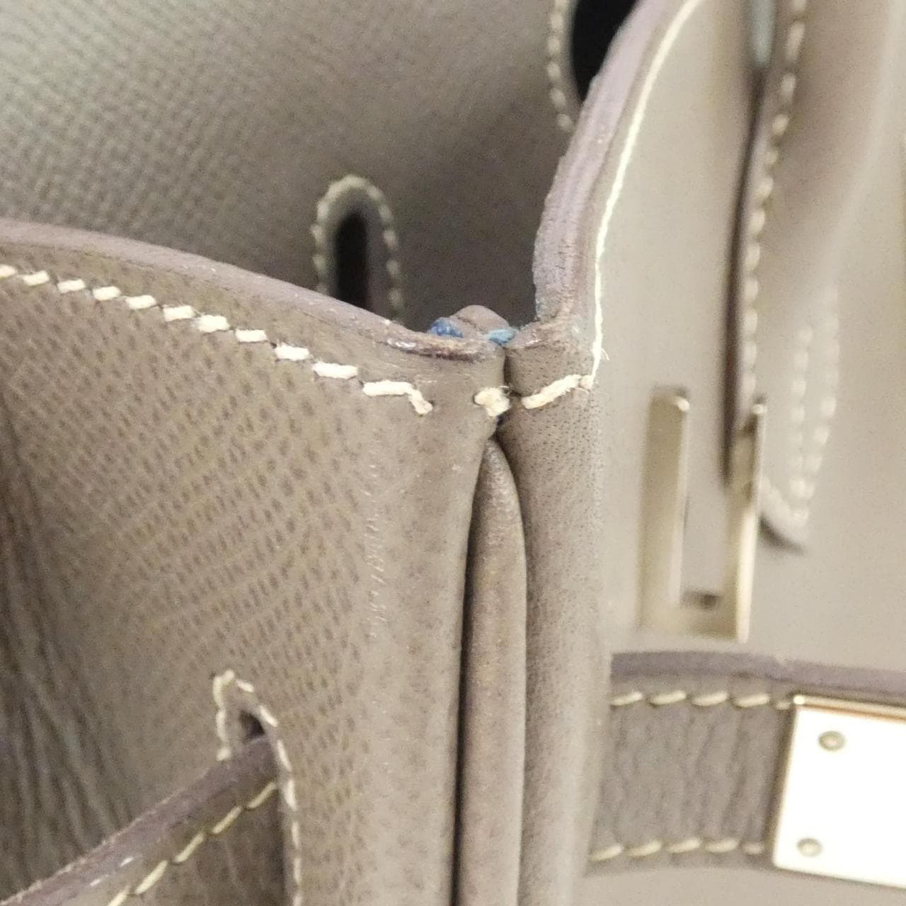 內側:拉鏈口袋1個、口袋1個,附有鎖鏈、鑰匙及鎖匙扣。有使用痕跡,部分位置有磨損、變黑、細小刮痕及褪色等情況。有筆跡及線頭跳線。□O 刻印