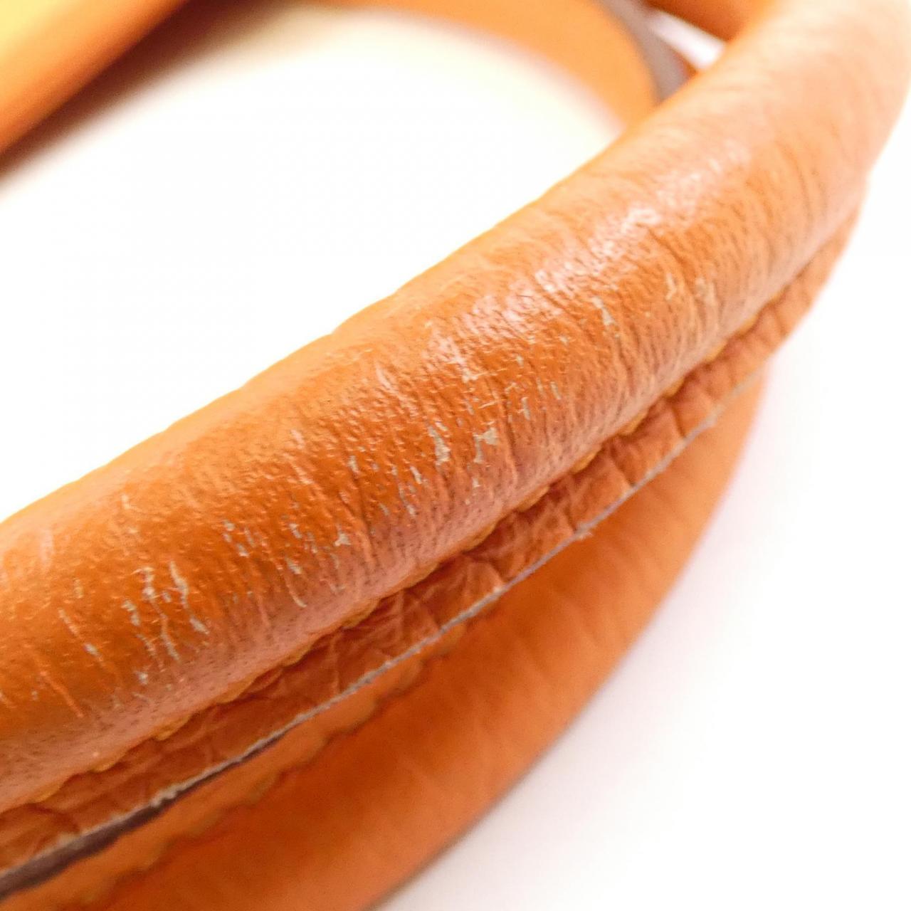 可見使用痕跡,含局部摩擦、褪色、輕微刮痕與暗淡 有褪色情況。 皮革出現剝落。 T刻印