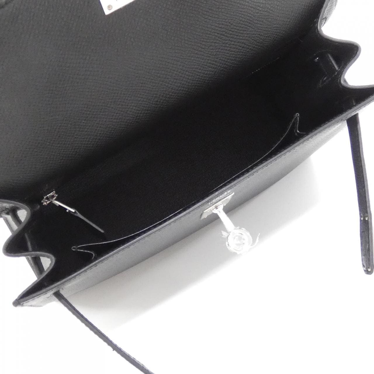 Interior: Zippered pocket 1, Pocket 1, With Strap, With Cadena, With Key, With Clochette, With Dust Bag, With Box. A clean secondhand item with minimal signs of use. Has partial rubbing, discoloration, minor scratches, and dullness. K stamp