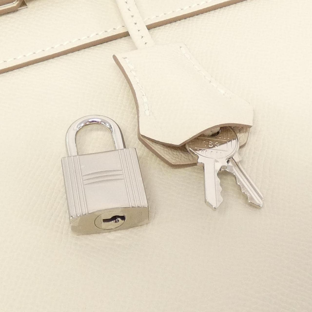 Interior: 1 zippered pocket, 2 pockets, with cadena, key, clochette, strap, dust bag, and box. A clean second-hand item with minimal signs of use. There are partial scuffs, darkening, minor scratches, and dullness. W stamp