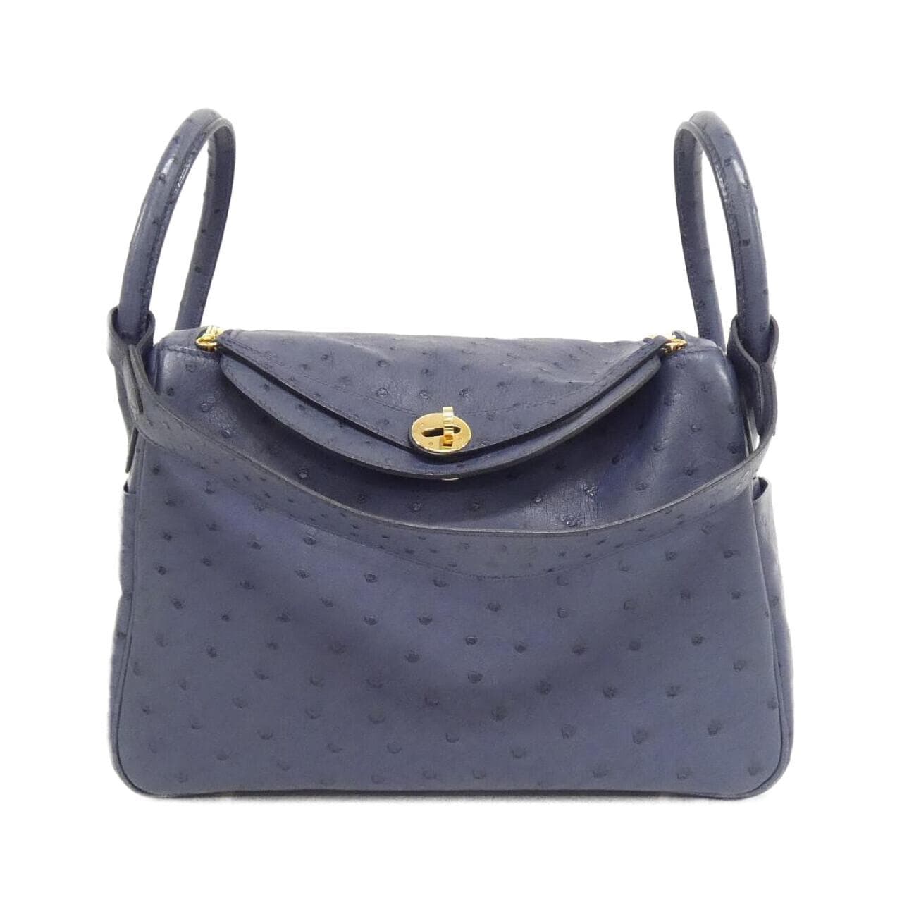 Exterior: 2 pockets. Interior: 2 pockets. Includes dust bag. A clean secondhand item with minimal signs of use. There are partial scuffs, darkening, minor scratches, and dullness. There is color transfer. A stamp.