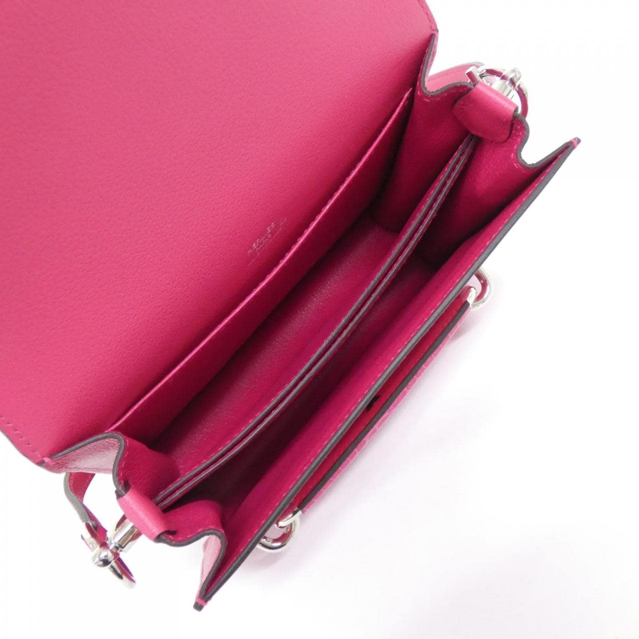 Exterior: 1 pocket. Interior: 2 pockets, includes dust bag and box. A clean second-hand item with minimal signs of use. There are partial abrasions, darkening, minor scratches, and dullness. There is a pen mark on the strap. Z stamp