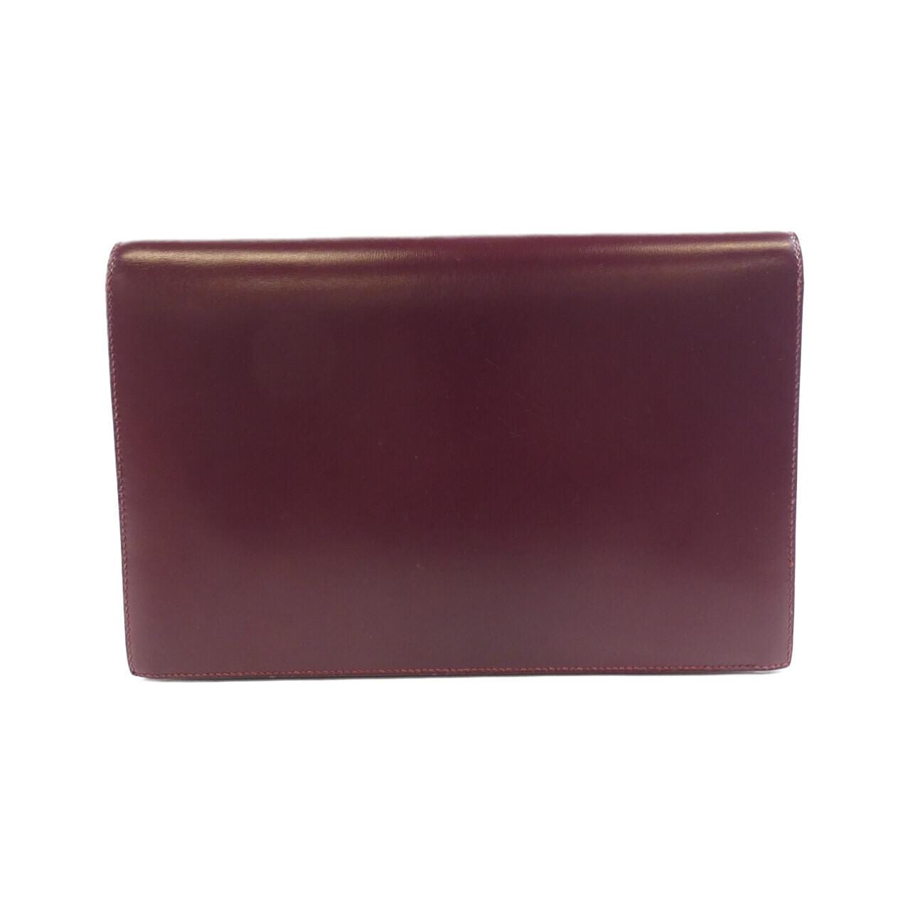 Interior: 1 zippered pocket, 2 pockets. Shows signs of use, with partial scuffs, darkening, minor scratches, and dullness. There are loose threads. ○M stamp.
