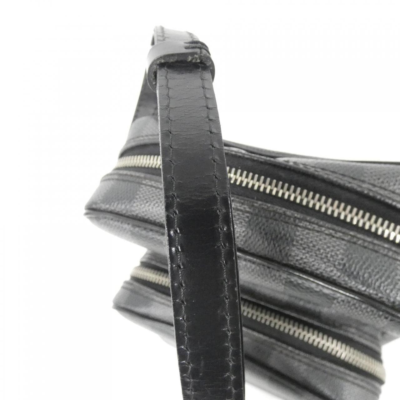 1個拉鏈袋。內側:1個口袋。使用痕跡輕微的整潔二手品。存在局部磨損、變色、輕微刮痕及褪色。肩帶有裂紋。