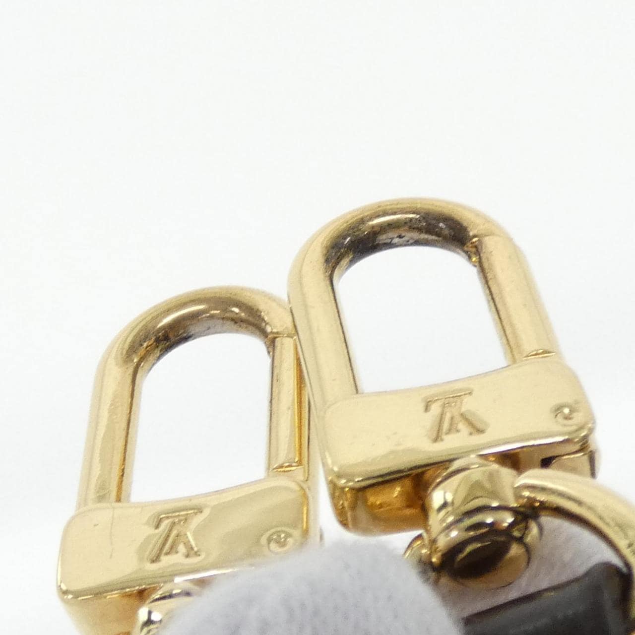 2個口袋。內側:1個拉鏈口袋,1個口袋。附有肩帶、鎖匙包、鎖匙和鎖頭。使用痕跡輕微的潔淨二手物品。部分位置有磨損、變黑、小刮痕和褪色。