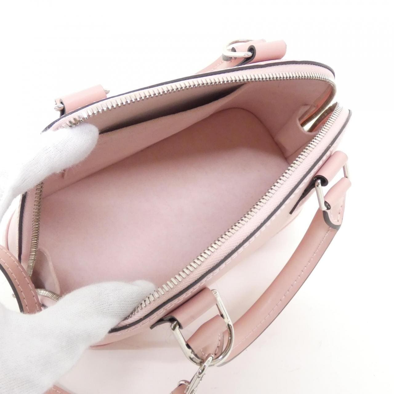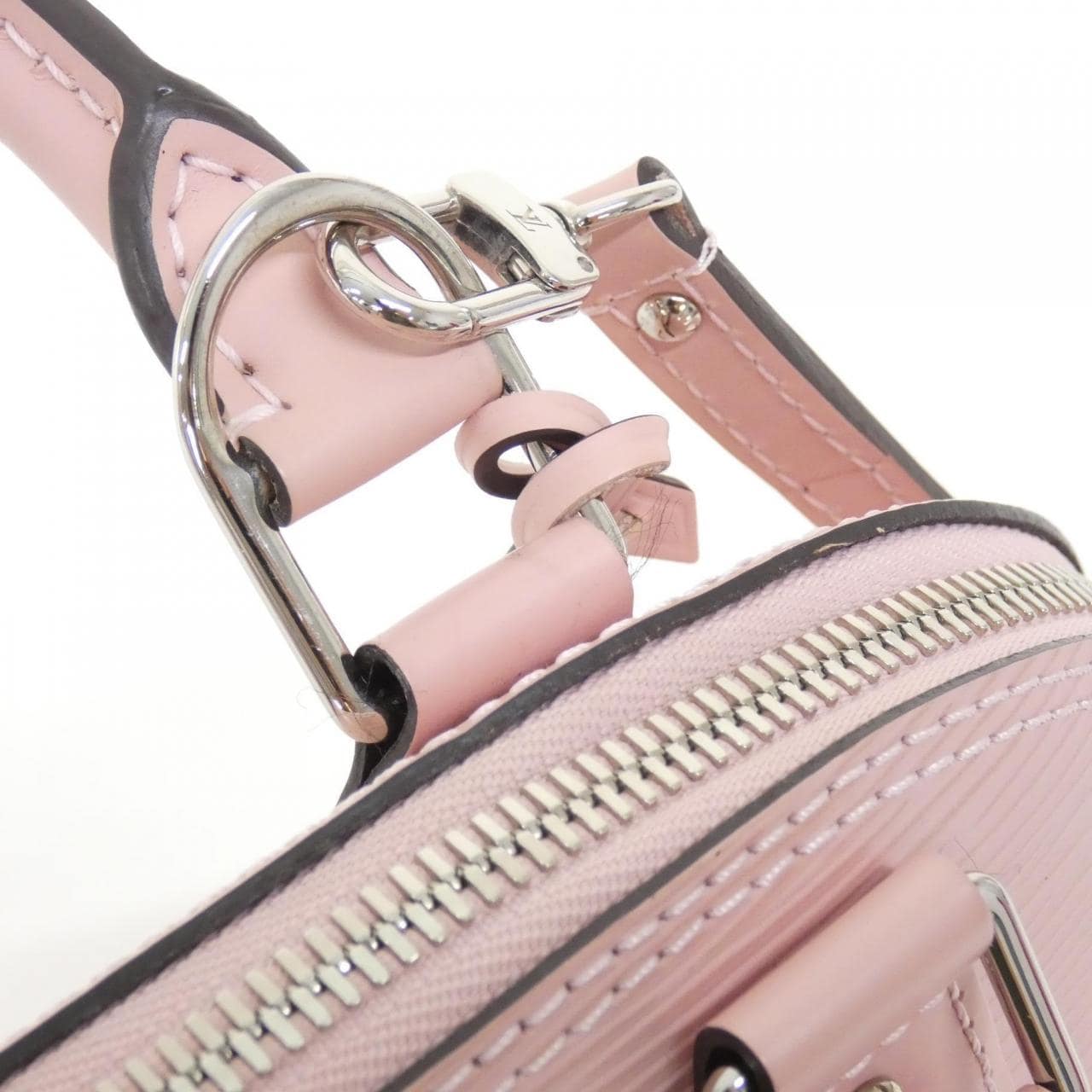 1個口袋,附有鎖扣、鎖匙、鎖匙包、肩帶。使用痕跡輕微的潔淨二手品。有局部摩擦、氧化、輕微刮痕和褪色。