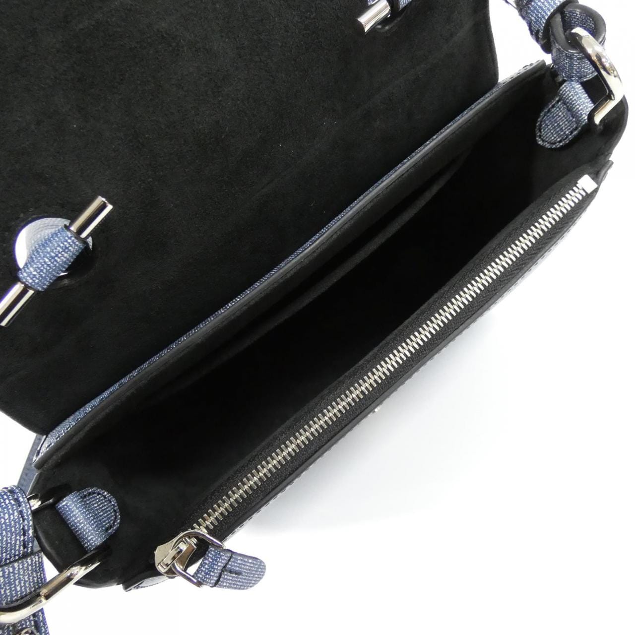 1個拉鍊口袋,1個口袋,附肩帶及防塵袋。潔淨二手品,使用痕跡輕微。局部有磨損、褪色、細小刮痕及氧化。有鬆線。