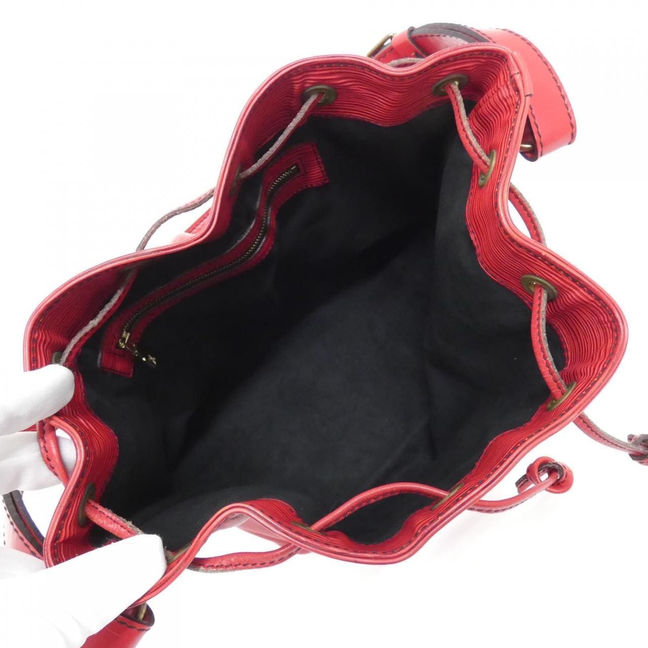 1個拉鏈口袋。有使用痕跡,部分有磨損、變深色、輕微刮痕和褪色。
