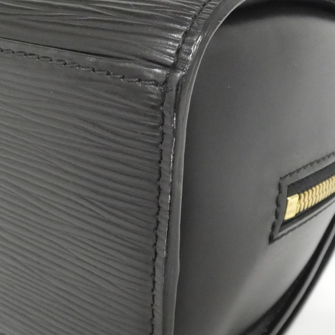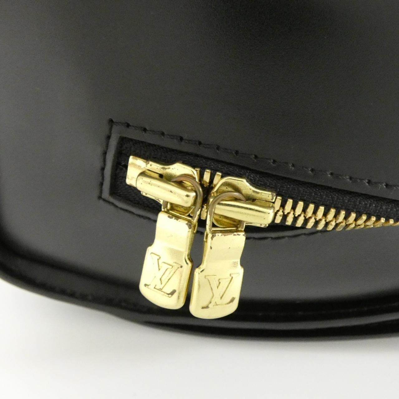 2 pockets. Interior: 1 zippered pocket, 1 pocket. A clean used item with minimal signs of use. There is partial rubbing, darkening, minor scratches, and tarnishing. There is a perfume odor.