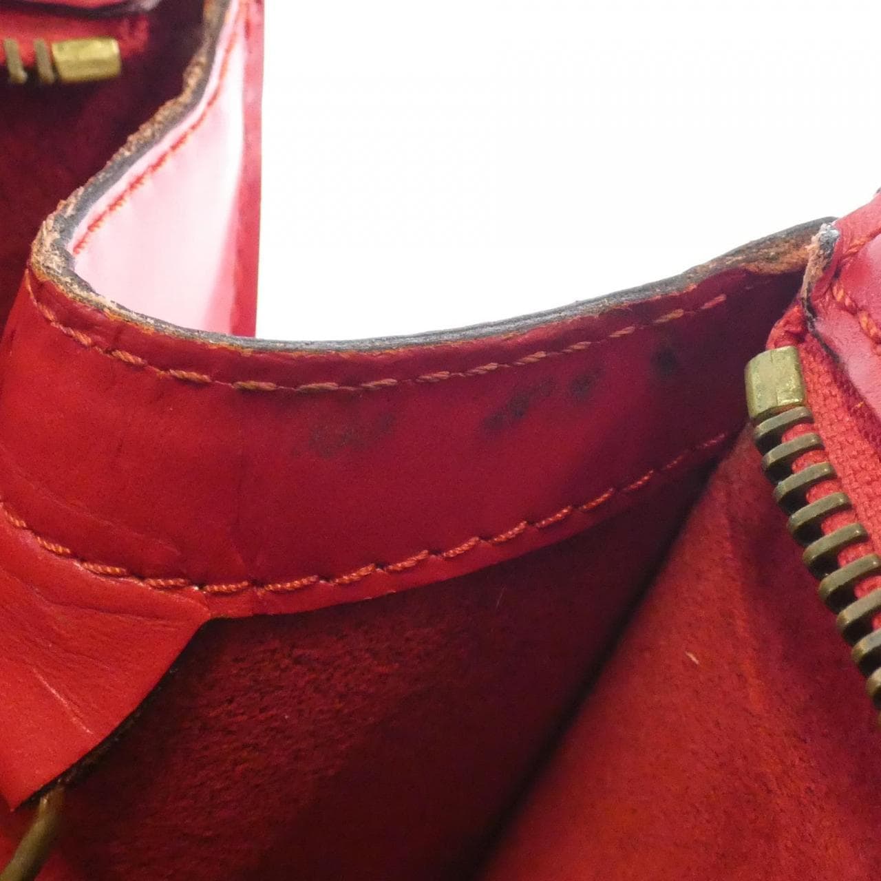 1個拉鍊口袋。有使用痕跡,包括局部摩擦、氧化、輕微刮痕和褪色。手柄有皮革裂紋。