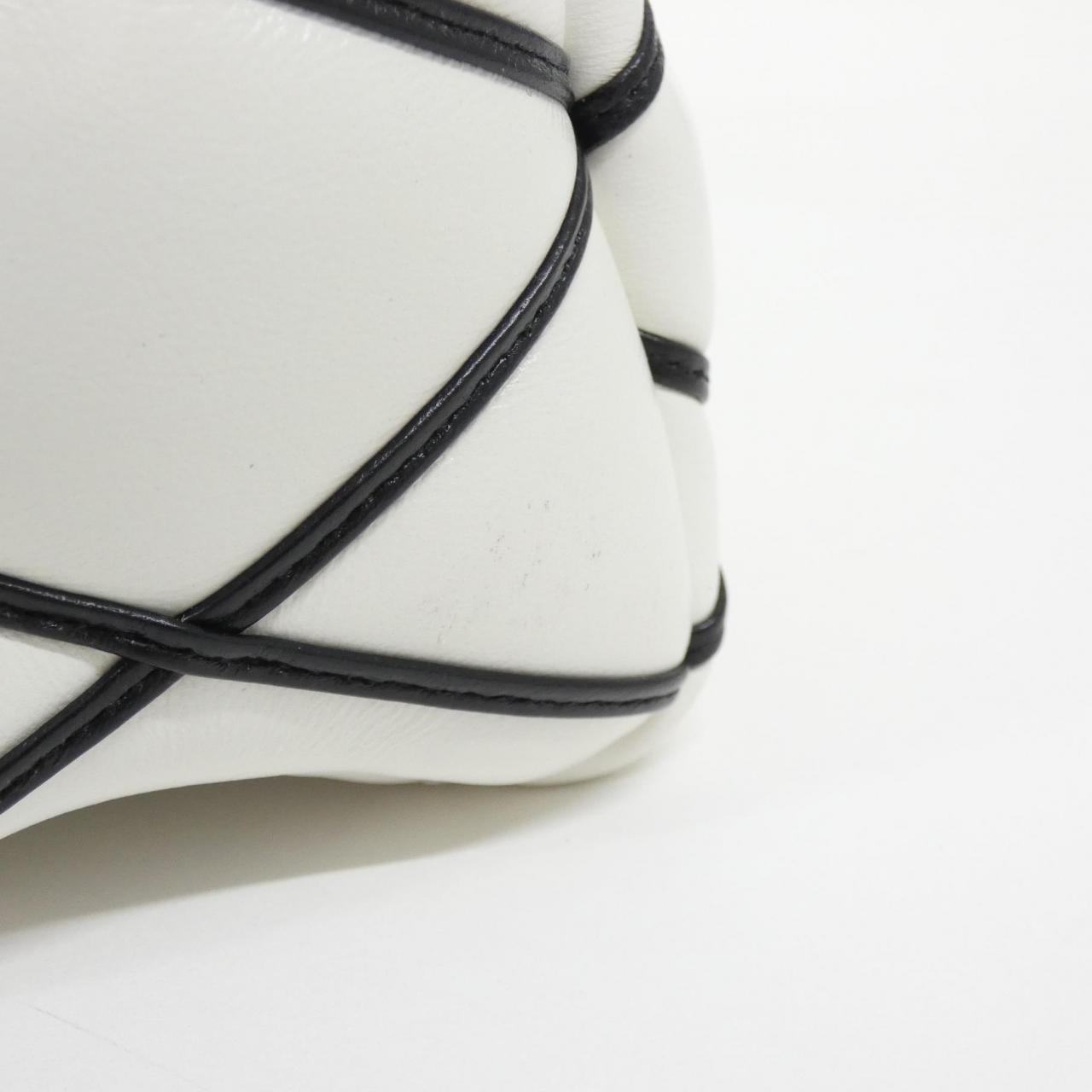 内側:ファスナーポケット1 ポケット1 ストラップ付 ミラー付 保存袋付 使用感の少ないきれいな中古品です 部分的に擦れ、黒ずみ、小傷、くすみ等があります。