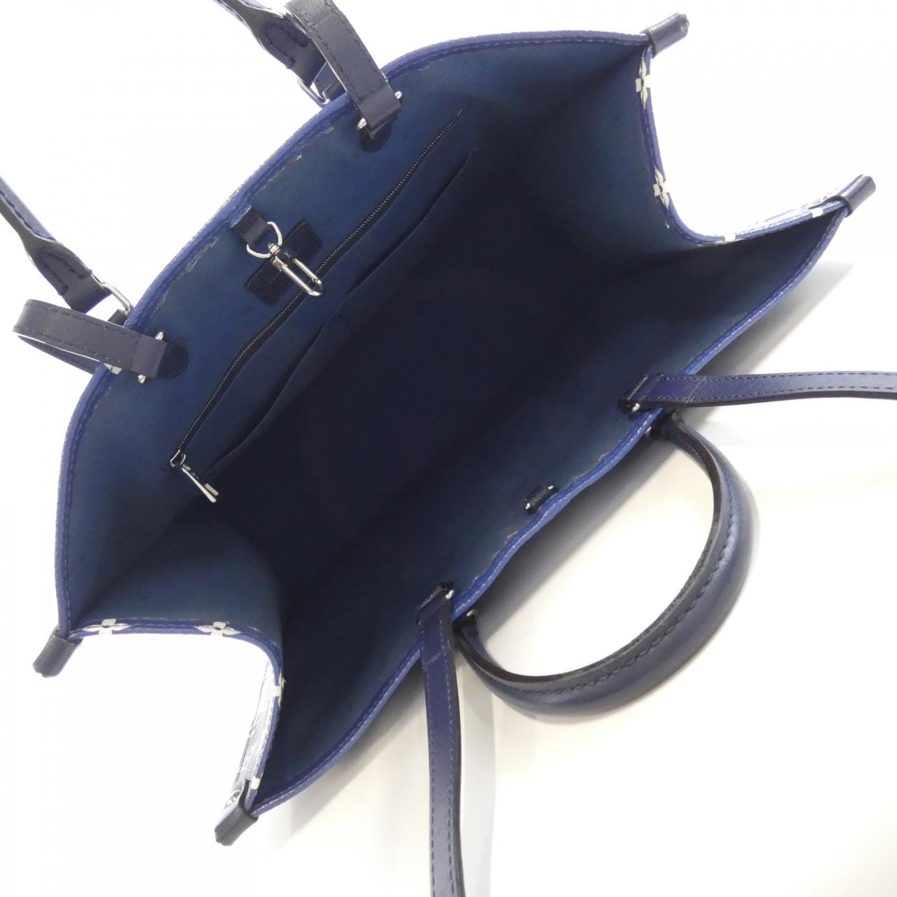 1個拉鍊口袋,2個口袋。附防塵袋。有使用痕跡,部分位置有摩擦痕跡、變深色、輕微刮痕和褪色。邊漆有脫落。