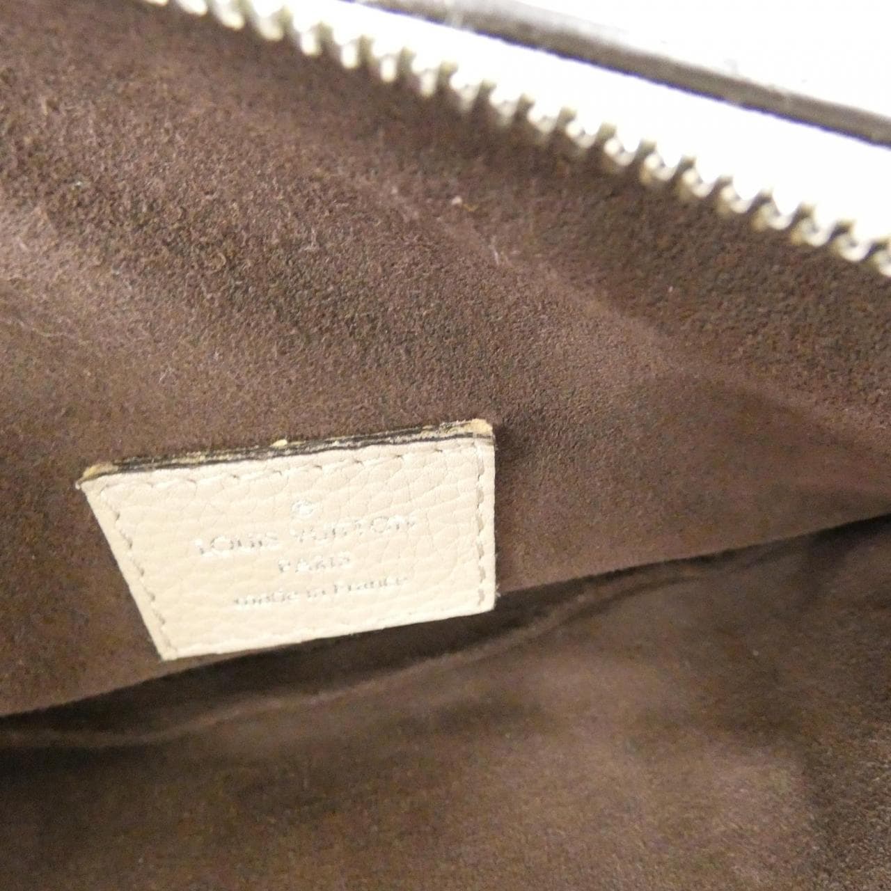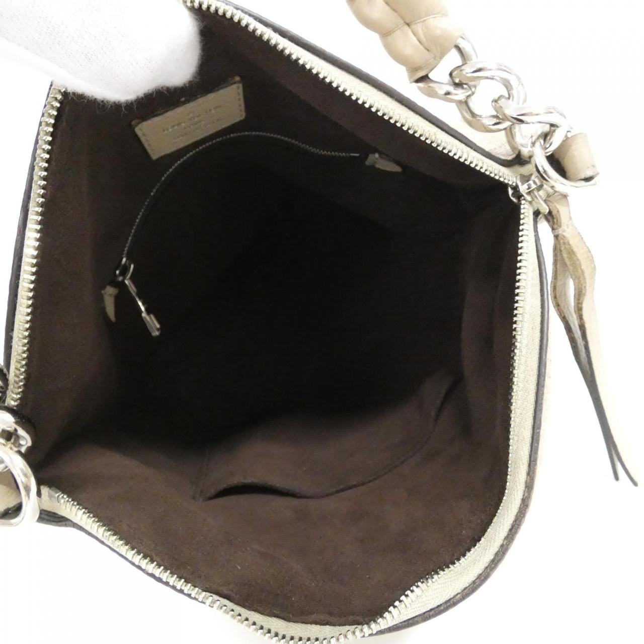 拉鏈口袋1 口袋1 附肩帶 可見使用痕跡,含局部摩擦、褪色、輕微刮痕與暗淡 拉鏈頭有皮革剝落