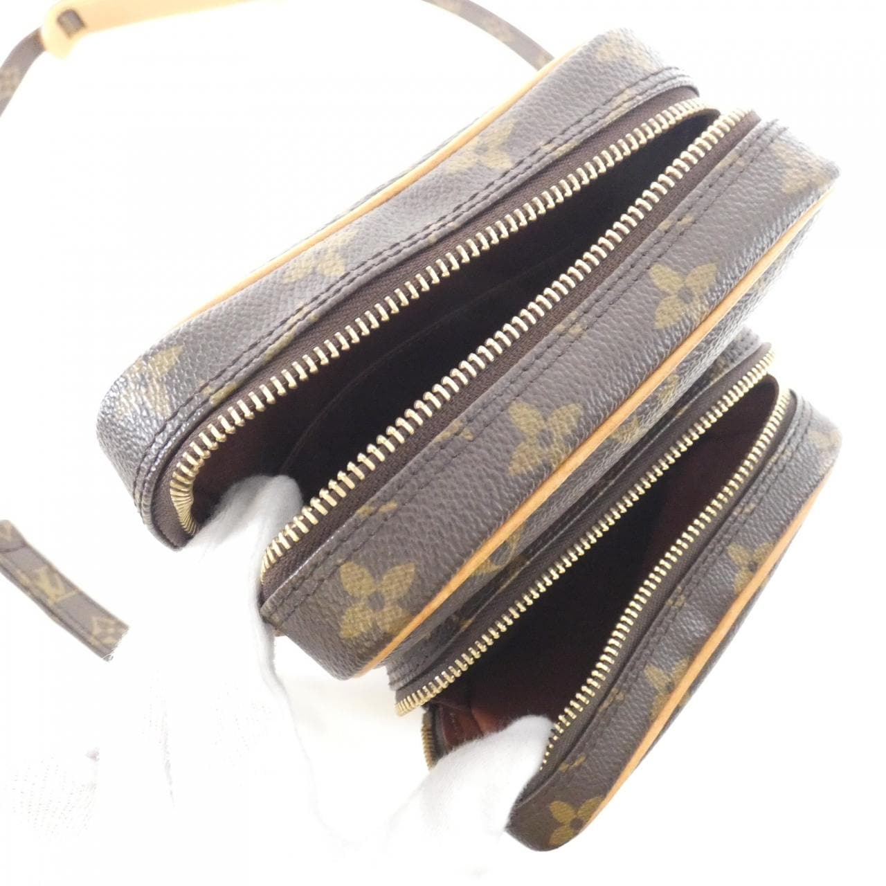 拉鏈口袋1 口袋1 可見使用痕跡,包含局部磨損、褪色、輕微刮痕及暗沉