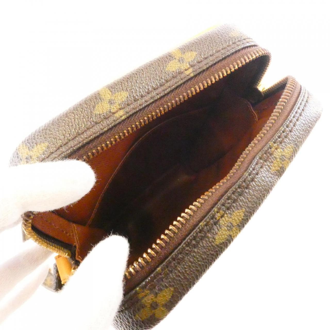 1 pocket. Interior: 1 pocket. Shows signs of use, with partial scuffs, darkening, minor scratches, and tarnishing.
