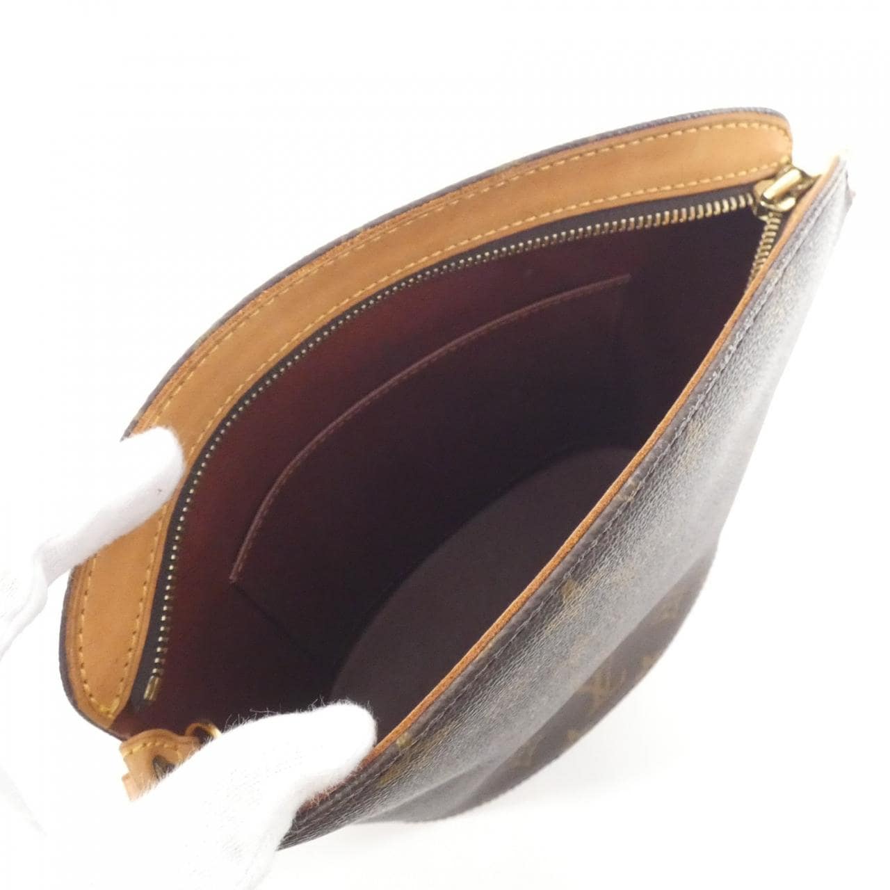 口袋1 附防塵袋 可見使用痕跡,包含局部磨損、褪色、輕微刮痕及暗沉 內袋浮起