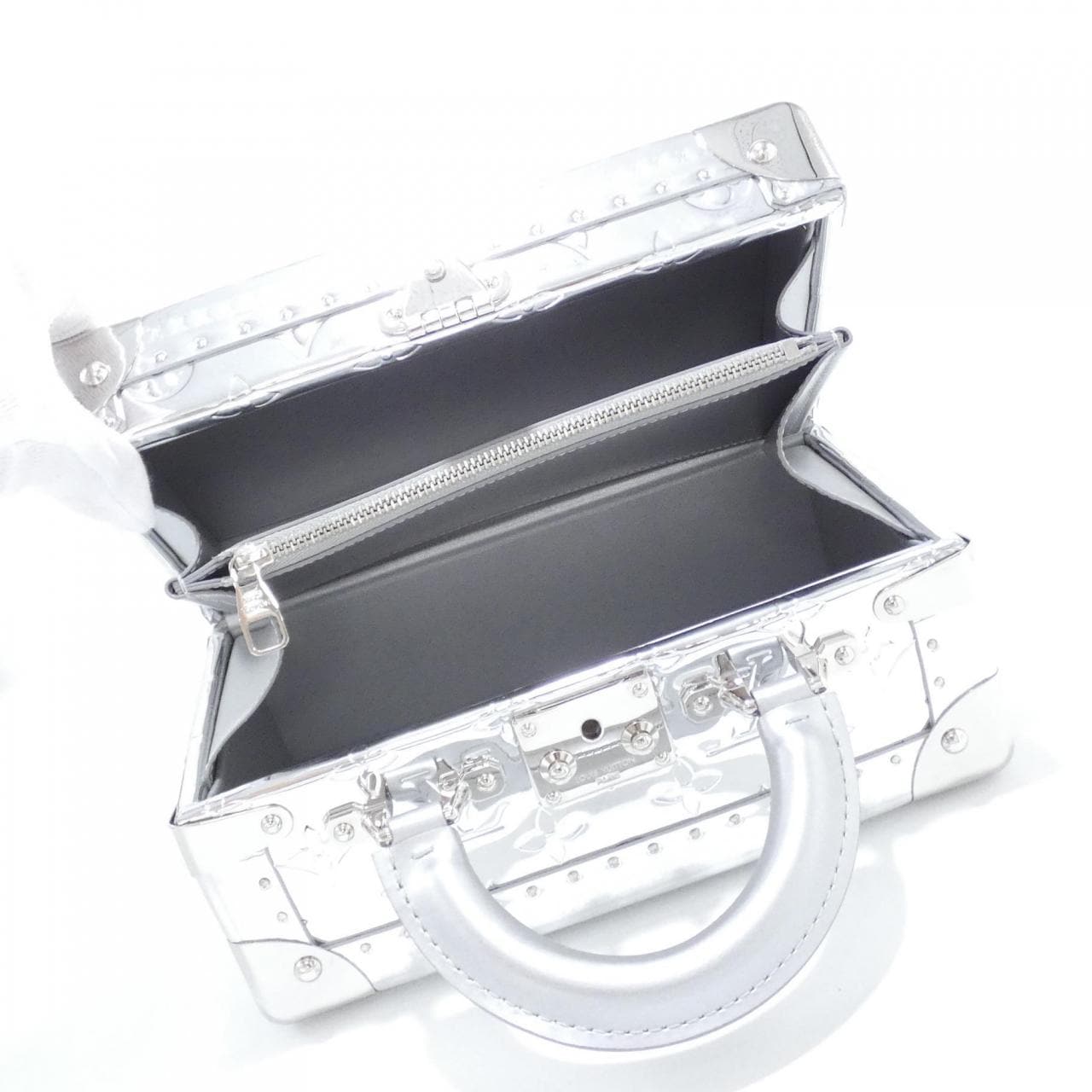 1個拉鏈口袋。附肩帶、名牌及防塵袋。使用痕跡輕微的整潔二手品。部分位置有磨損、變色、輕微刮痕及褪色。