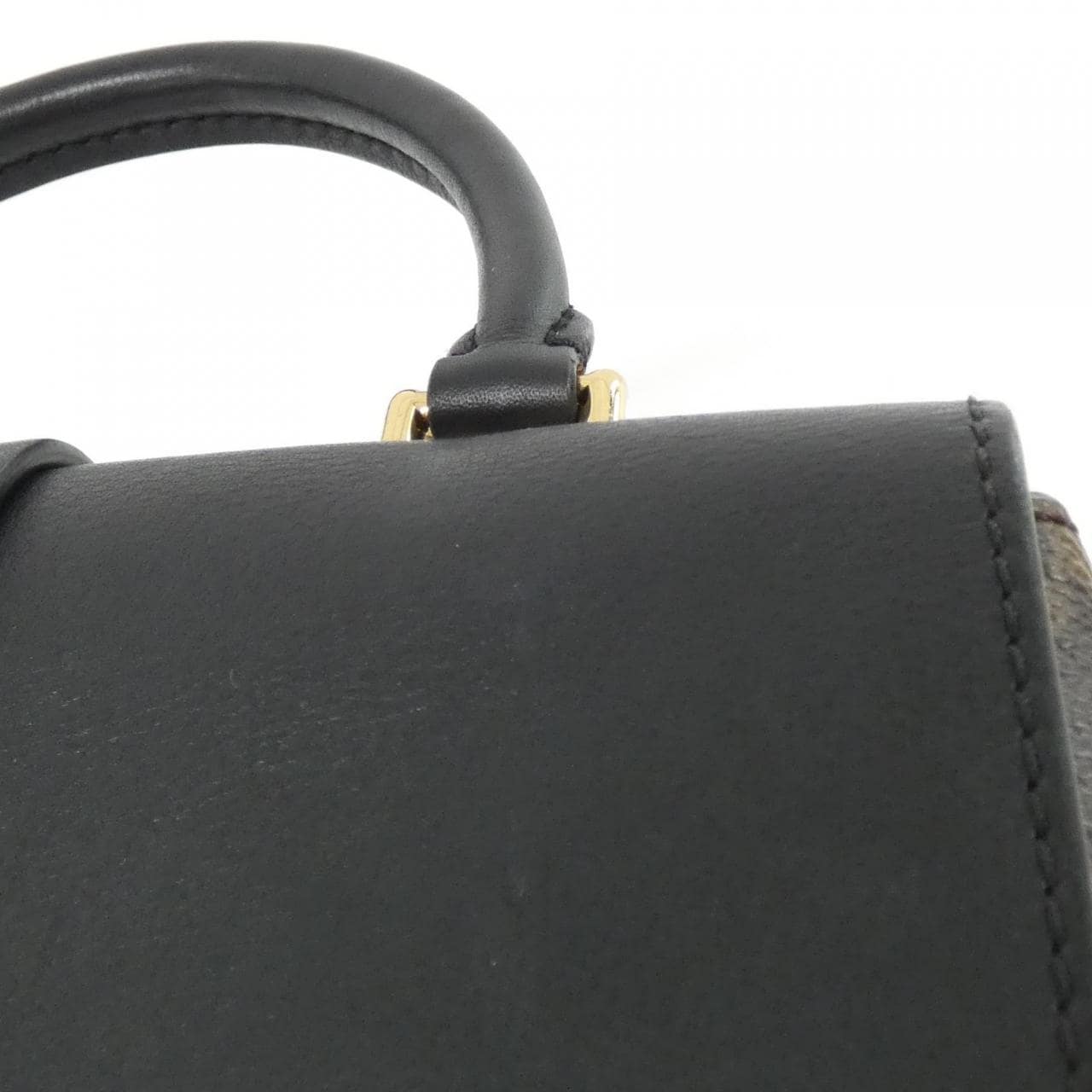 内側 : ポケット1 ストラップ付 使用感の少ないきれいな中古品です 部分的に擦れ、黒ずみ、小傷、くすみ等があります。