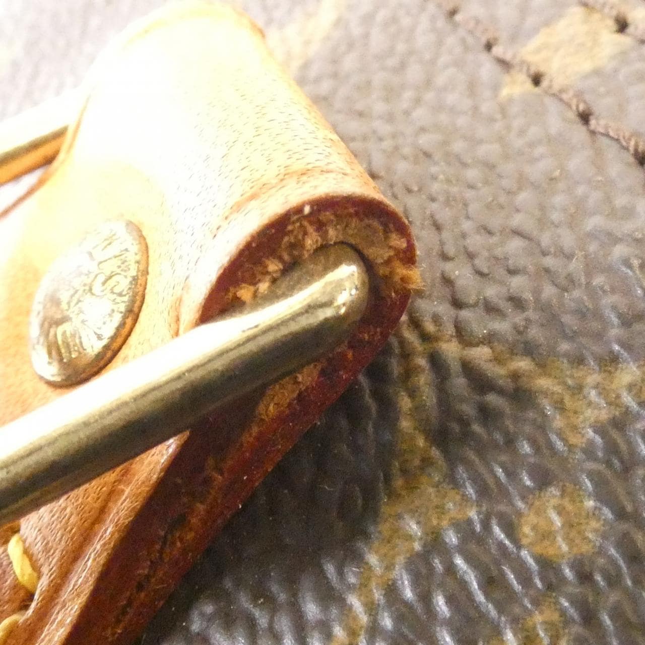 1個口袋、附鑰匙鈴、附防塵袋。有使用痕跡,包括局部磨損、變深色、細小刮痕及褪色。鑰匙缺失。