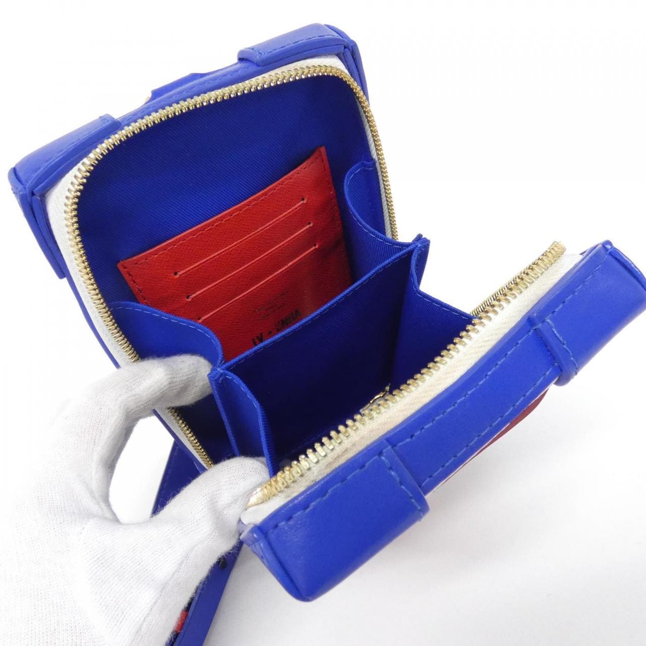 1個口袋。內側:1個口袋,3個卡槽。附有名牌。使用痕跡輕微的潔淨二手物品。部分位置有磨損、變黑、小刮痕和褪色。