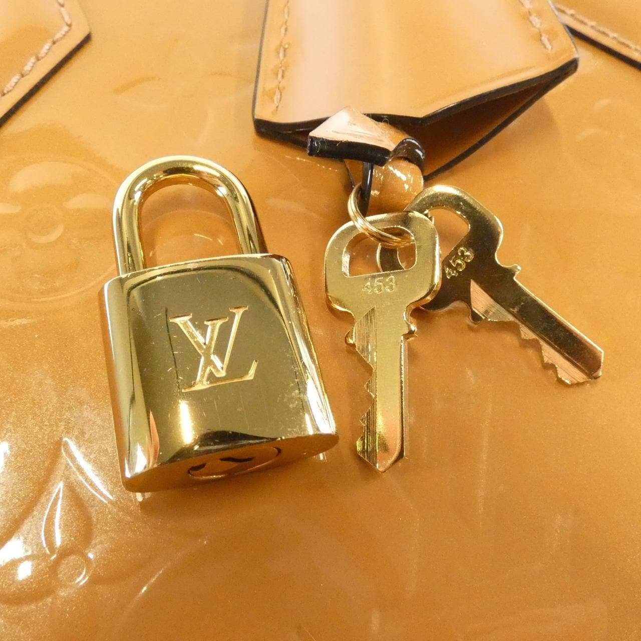 1個口袋,附肩帶,附鎖匙包,附鎖匙,附斜揹帶。使用痕跡輕微的整潔二手品。存在局部磨損、變色、輕微刮痕及褪色。有顏色轉移。
