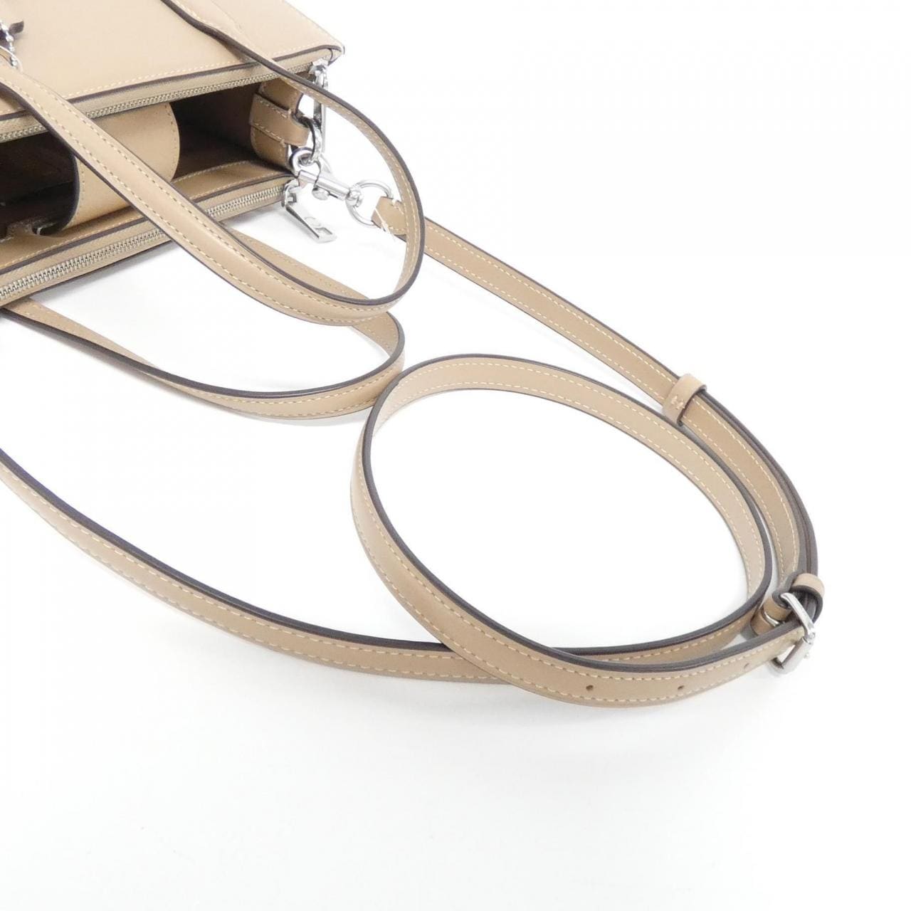 拉鍊口袋2 內側:口袋1 附背帶 請注意,由於使用天然材料,可能存在顏色不均、摩擦痕跡、皺褶、輕微刮痕或小黑點等固有特性,這些不屬於產品缺陷 特價商品 ■重要提醒■ 關於附帶物品:照片未顯示或未列明的物品皆不包含在內