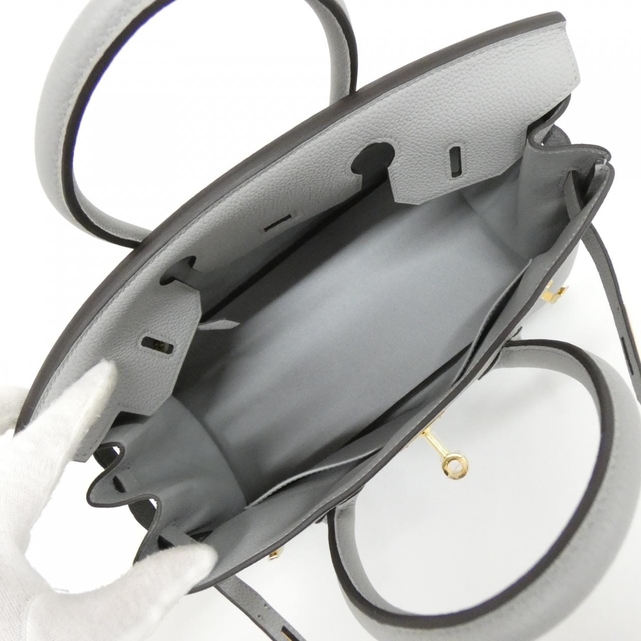 Interior: 1 zippered pocket, 1 pocket, with padlock, with key, with clochette, with dust bag, with box. W stamp