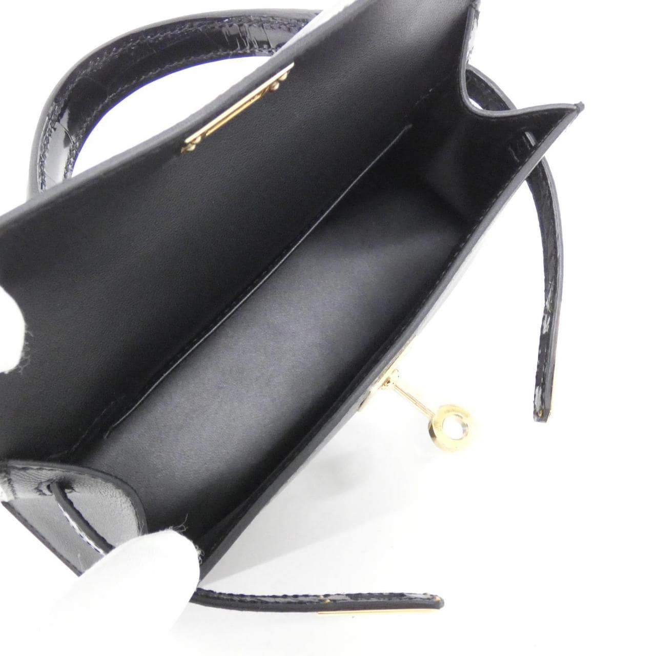 Interior: 1 pocket, with strap. Includes dust bag and box. This is an unused item, but the box is in poor condition. W stamp.